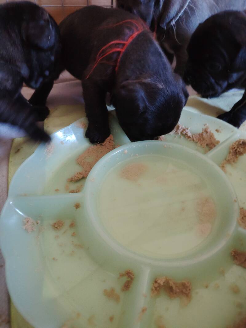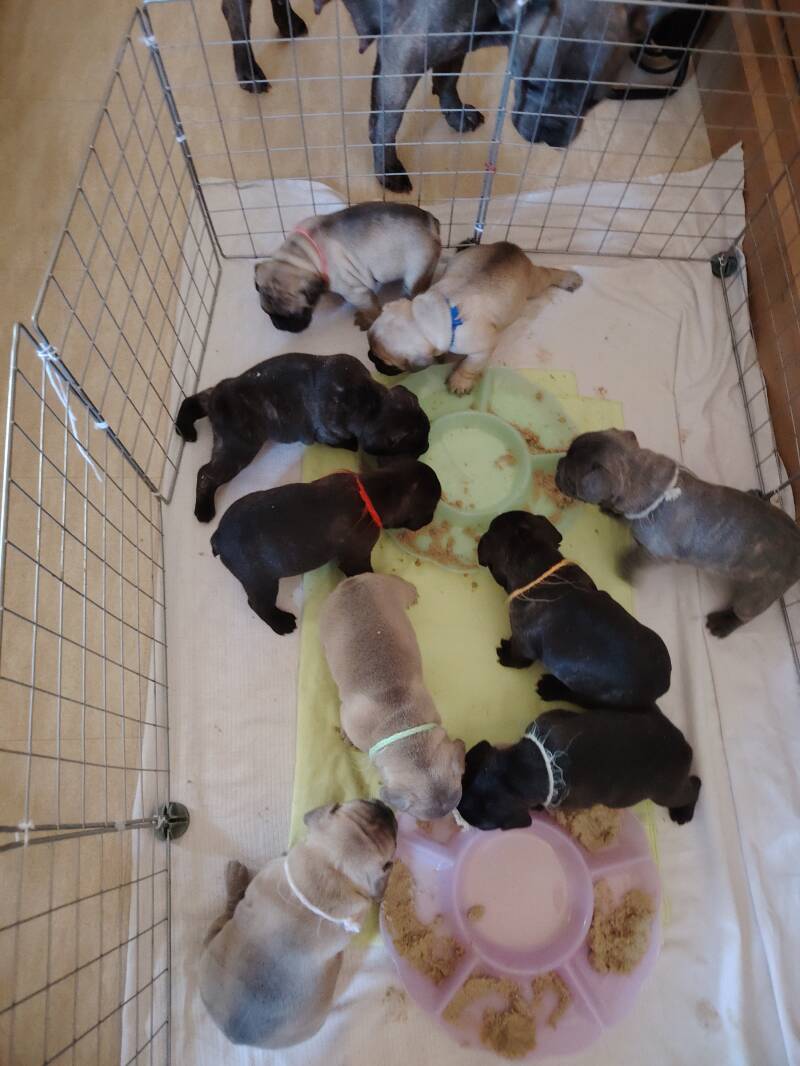 Umi gère bien l'allaitement. Elle a pratiquement quadruplé ses repas enrichit de poulet, lait maternisé croquettes saumon puppy, pour pouvoir nourrir les neuf pitchouns correctement.